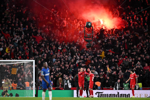 หงส์แดง เปิดเกมได้ดีกว่าโหมบุกเข้าใส่ โรเบิร์ตสัน เปิดบอลจากทางซ้ายไปทางเสาไกล ดิอาซ ไปฝืนพยายามถอยโหม่งไม่ปล่อยกัคโป สุดท้ายโหม่งเบาไปเปโตรวิชถอยไปรับได้