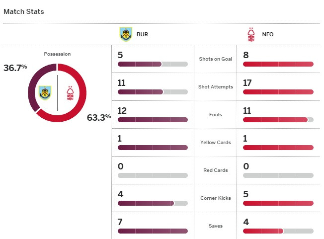 ฟอเรสต์พยายามเต็มที่ แต่ยิงประตูชัยไม่ได้ จบเกมทได้แค่เสมอเบิร์นลีย์ 1-1