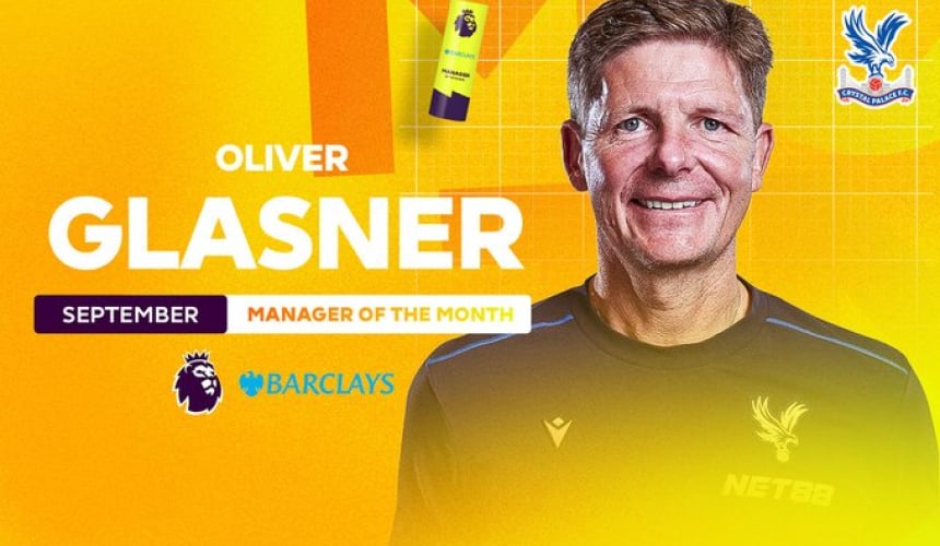 โอลิเวอร์ กลาสเนอร์ เฮดโค้ชของ คริสตัล พาเลซ คว้ารางวัลผู้จัดการทีมยอดเยี่ยมพรีเมียร์ลีก อังกฤษ ประจำเดือนกันยายน 2025 ที่ผ่านมา
