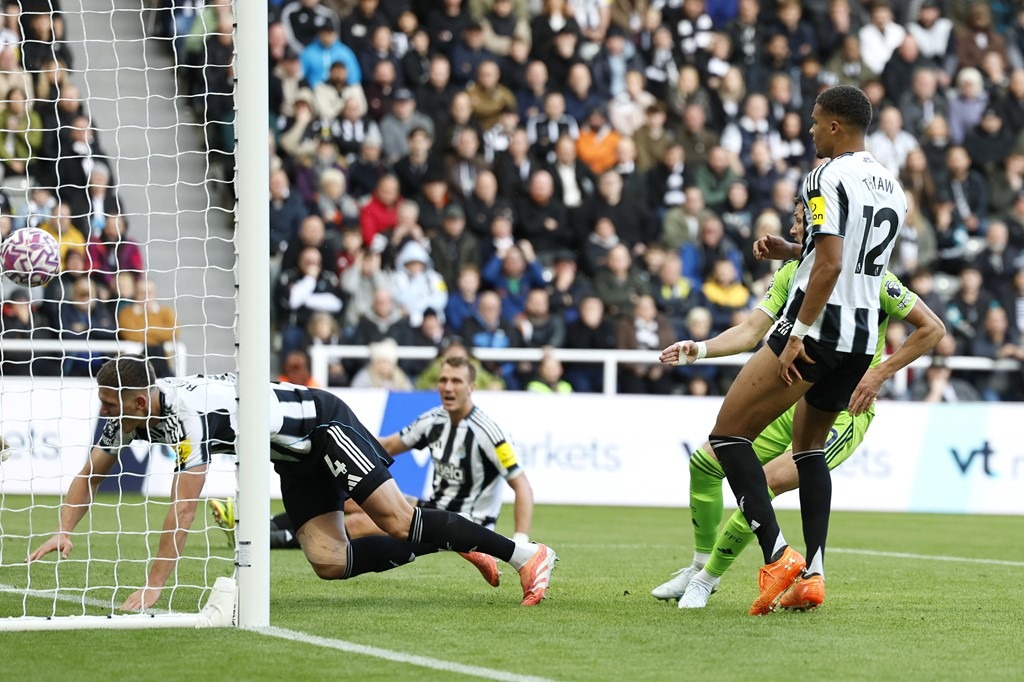 หวิดมีประตูให้ นิวคาสเซิ่ล กลับไปนำทันทีกับลูกทุ่มทางซ้ายให้ โวลเตอมาเดอ ในเขตโทษพักบอลแล้วจ่ายย้อนที่ กอร์ดอน เปิดไปตรงกลาง กีมาไรส์ สอดมาโหม่งคนเดียวแต่หลุดกรอบน่าเสียดาย