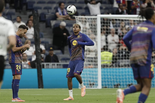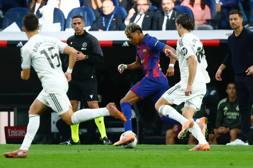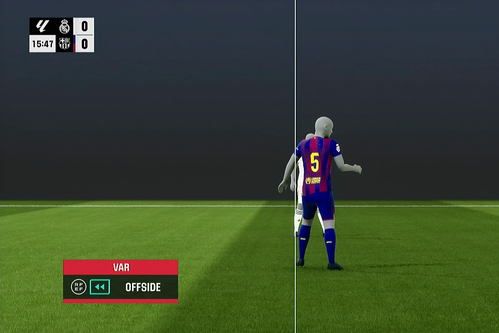 มาดริด สวนกลับบ้าง บัลเบร์เด้ จ่ายให้ วินิซิอุส หลุดกับดักล้ำหน้าเข้าเขตโทษง้างยิงโดน ยามาล เข้าบล็อค ผู้ตัดสินดูจอเช็คจุดโทษ แต่สุดท้ายไม่ให้