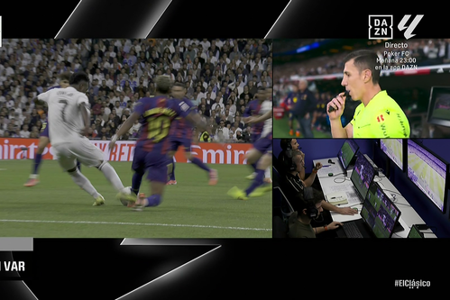 ครึ่งหลังไม่ทันไร จู๊ด หลุดไปเปิดติด การ์เซีย ทีแรกเปาปล่อยเล่นต่อ แต่ดู VAR แล้วจับแฮนด์ชี้จุดโทษ เอ็มบับเป้ สังหารติดเซฟ เชสนี่ ราชัน อดทิ้งห่าง